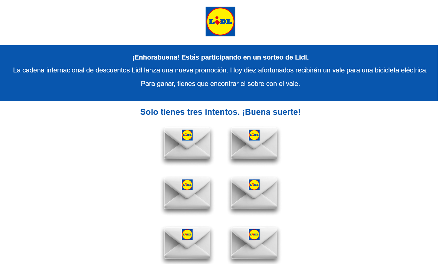 «Lidl sortea un vale para recibir una bicicleta eléctrica y para ganarla hay que elegir el sobre que contiene el premio»