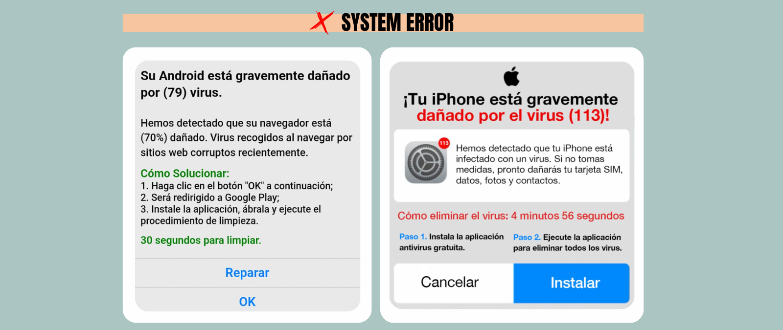 Ambos expertos señalan que instalar la aplicación recomendada por el aviso puede causar robo de datos, que se instale un malware —todo aquel software o programa que está diseñado para ser dañino o malicioso— real, caer en suscripciones fraudulentas o que los ciberdelincuentes tengan control remoto del dispositivo.