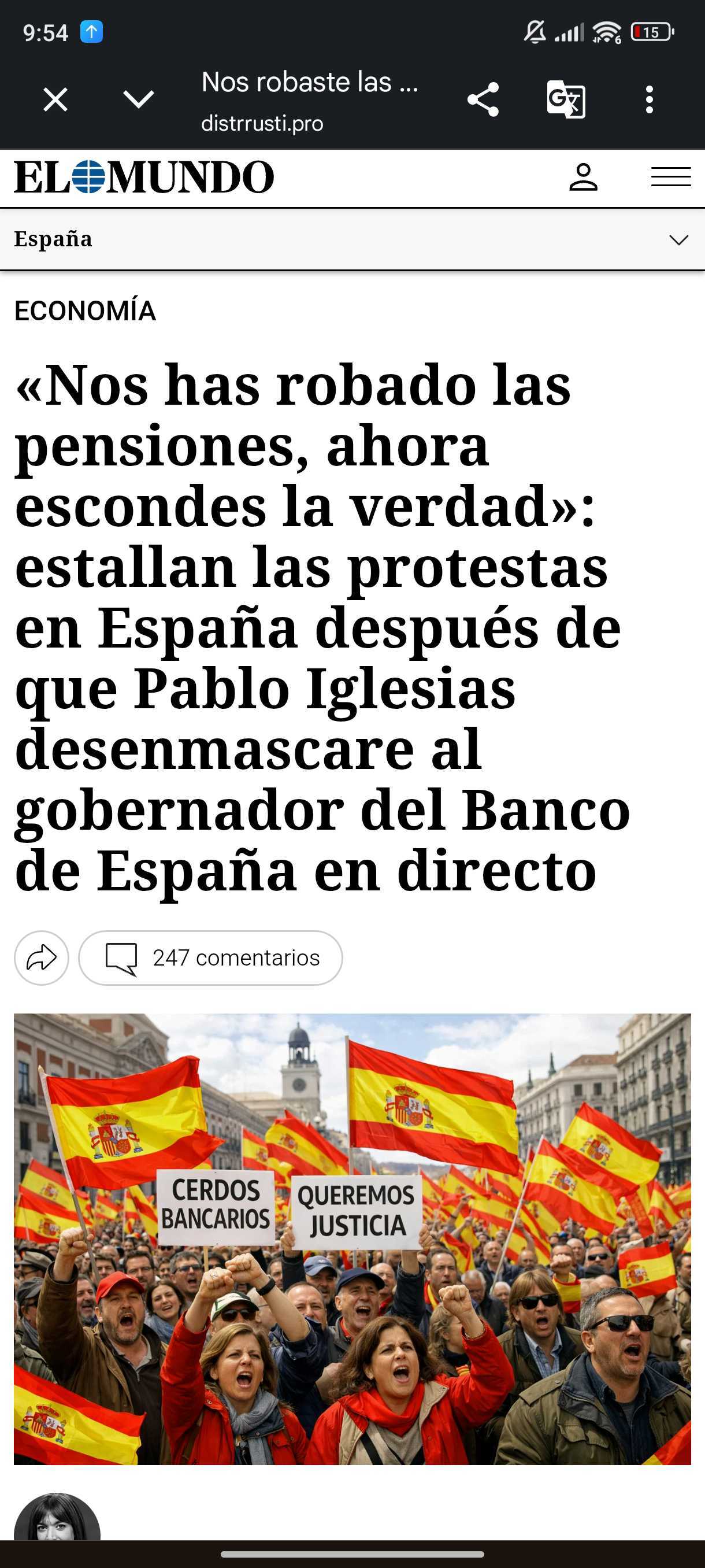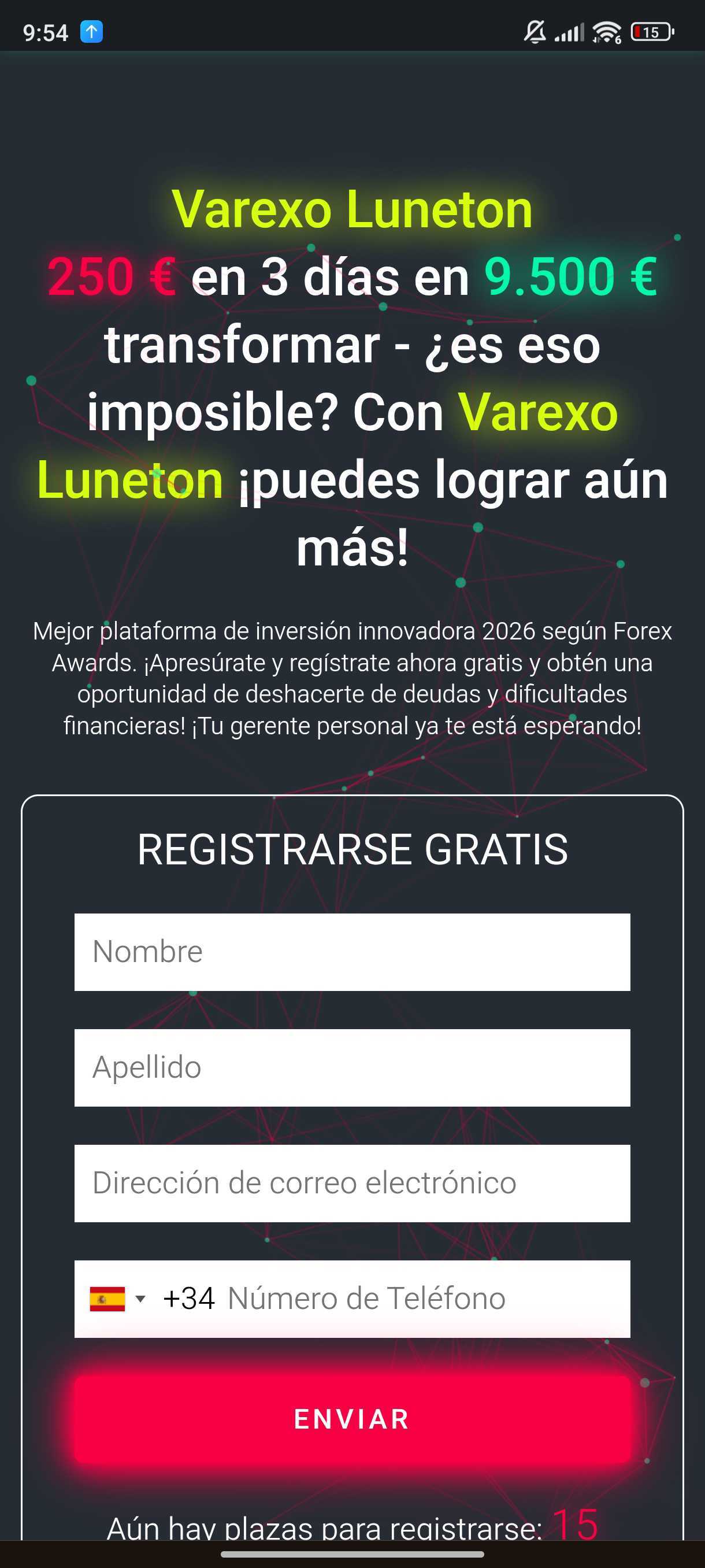 El enlace lleva a una web que utiliza el nombre y el logo de El Mundo y asegura que Pablo Iglesias ha promocionado la supuesta plataforma de inversión Avaren Serulix en La Sexta. Sin embargo, esta plataforma no está autorizada por la Comisión Nacional del Mercado de Valores (CNMV) y la URL de la web (distrrusti [.] pro) no tiene relación con la página oficial de El Mundo (elmundo.es/). En algunas de las imágenes que ilustran la web aparece Iglesias junto a un hombre al que identifican como José Luis Escrivá, gobernador del Banco de España, pero no hay constancia de que hayan acudido los dos a la vez a un debate en La Sexta. Otra de las señales de alerta es que todos los botones y enlaces de la web fraudulenta redirigen al sitio web de la supuesta plataforma, donde aparece un formulario que solicita datos personales, como nombre completo, correo electrónico y número de teléfono. Esta es una práctica habitual de los timadores, como ya hemos advertido en otras ocasiones.